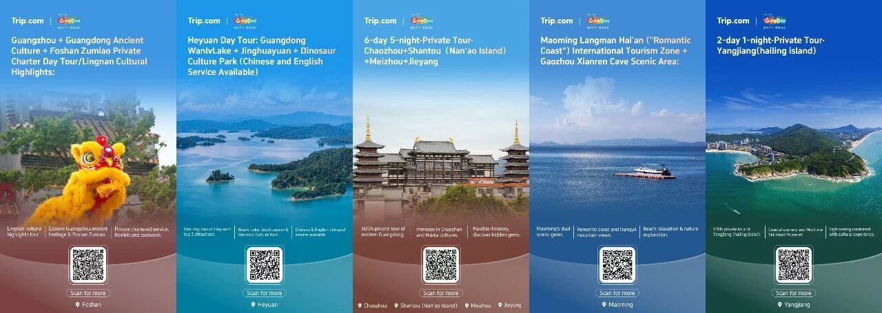跟随这批线路,游客可在“潮客文化深度六日游”中跨越揭阳、潮州、汕头、梅州,体验潮汕文化与客家文化的交融碰撞;在“佛山一日游”打卡清晖园、祖庙、黄飞鸿纪念馆,沉浸式感受佛山人文底蕴;在“茂名一日游”中联动浪漫海岸滨海度假与仙人洞山地探秘,体验沙滩放松与自然探险;在“阳江两日游”中深度玩转海陵岛,探访“南海I号”海上丝绸之路博物馆,邂逅碧海丝路古韵;在“河源一日游”中一站式打卡万绿湖、镜花缘、恐龙文化公园,满足家庭出行、亲子研学等多元游览需求。