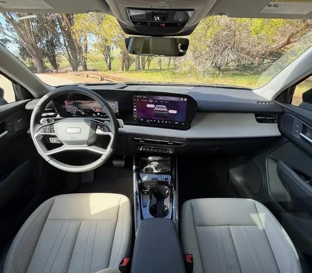 内饰是此次换代的重点。全新四幅式方向盘采用皮革包裹,前方是一块由11.9英寸液晶仪表和12.8英寸中控屏组成的曲面双联屏,整体向驾驶侧倾斜。空调出风口下方保留了一排物理按键,兼顾了操作便利性。这套布局终于让Q3在科技感上追上了同级对手,但曲面屏的反光问题和上手学习成本,或许会成为新的槽点